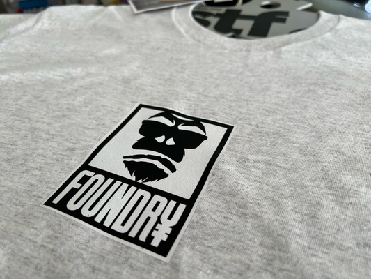 A Foundry in Black on White, 100% cotton Tee.